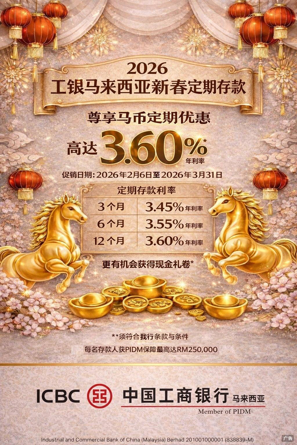 5. 更多活动详情,请参阅“2026工银马来新春定期存款促销活动“条件与规则, 请按此:<链接>。